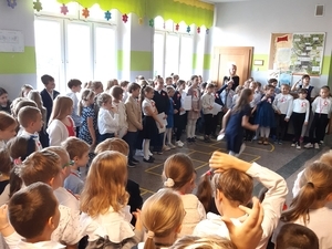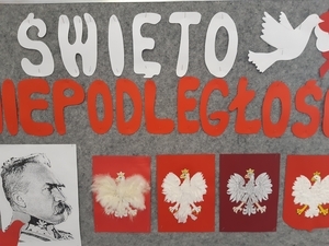 Uroczyście i radośnie obchodziliśmy Święto Niepodległości 11 Listopada. Uczniowie klas I-III uczestniczyli w uroczystym apelu, przygotowanym przez klasę III a z p. Iwoną Najdek. Śpiewali patriotyczne pieśni i wykazali się wiedzą w quizie patriotycznym. Uczniowie klas IV-VIII uczestniczyli w akademii, przygotowanej przez p. Elżbietę Bartoszek i p. Olgę Berdechowską, na której pokazano prezentację "Droga do Niepodległej" i śpiewano patriotyczne pieśni, zachwyt widowni wzbudziła pieśń "Co to jest niepodległość?". Największą popularnością wśród uczniów cieszyła się pieśń "Jesteśmy Polką i Polakie", słowa "Kochamy Polskę z całych sił, chcemy byś również kochał ją i ty i ty!" nadały uroczystościom podniosły, patriotyczny nastrój. Uczniowie podkreślili Święto Niepodległości galowymi strojami, do których przypiete były biało-czerowne kotyliony.