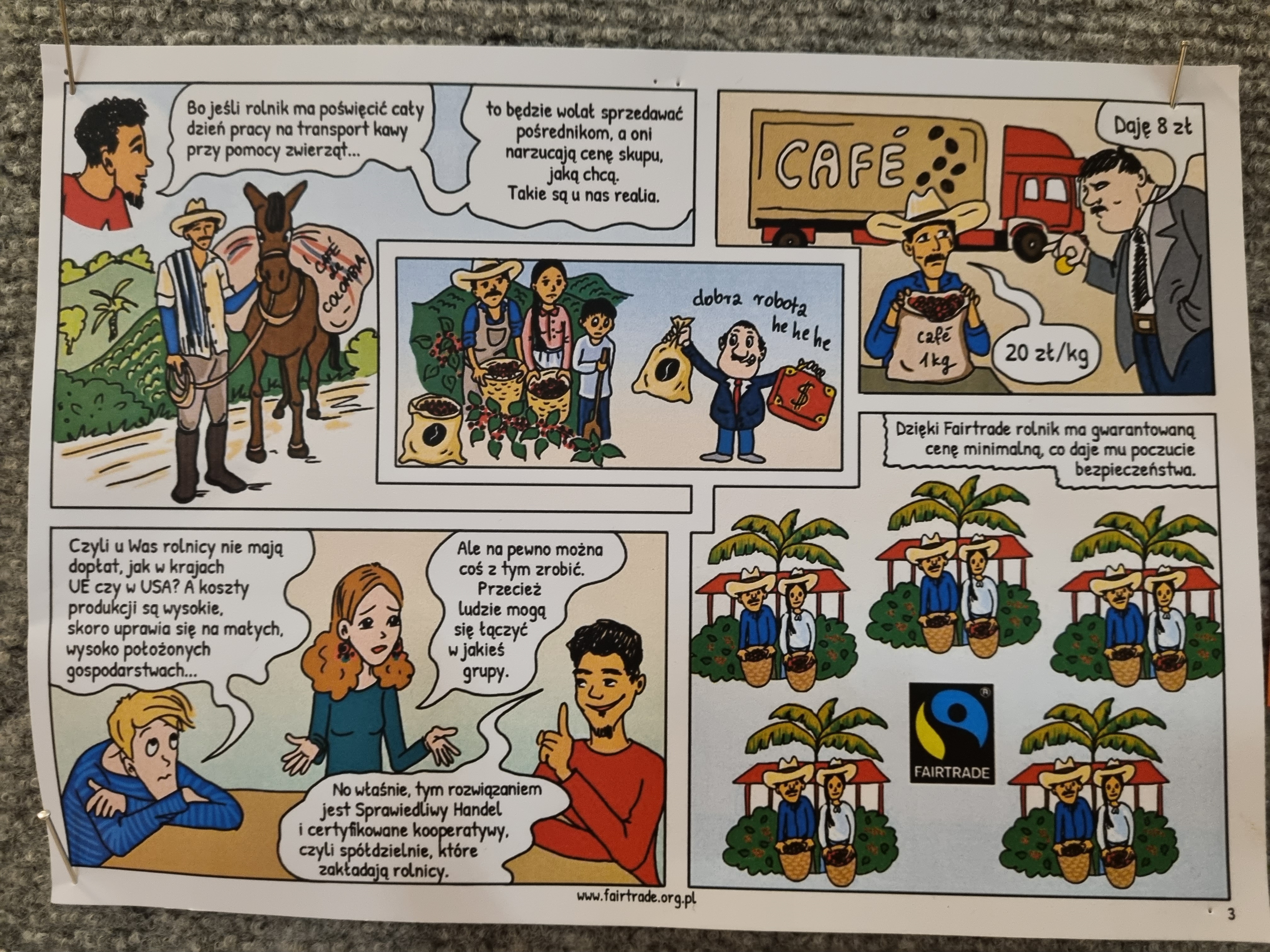 W związku z powyższym od 14 do 20 listopada br. została przygotowana z tej okazji wystawa, która cieszyła się dużym zainteresowaniem. Młodzież, czytając historię trojga bohaterów, mogła znaleźć odpowiedzi na kluczowe pytania i tym samym odczarować słowo - FAIRTRADE (poniżej galeria zdjęć).