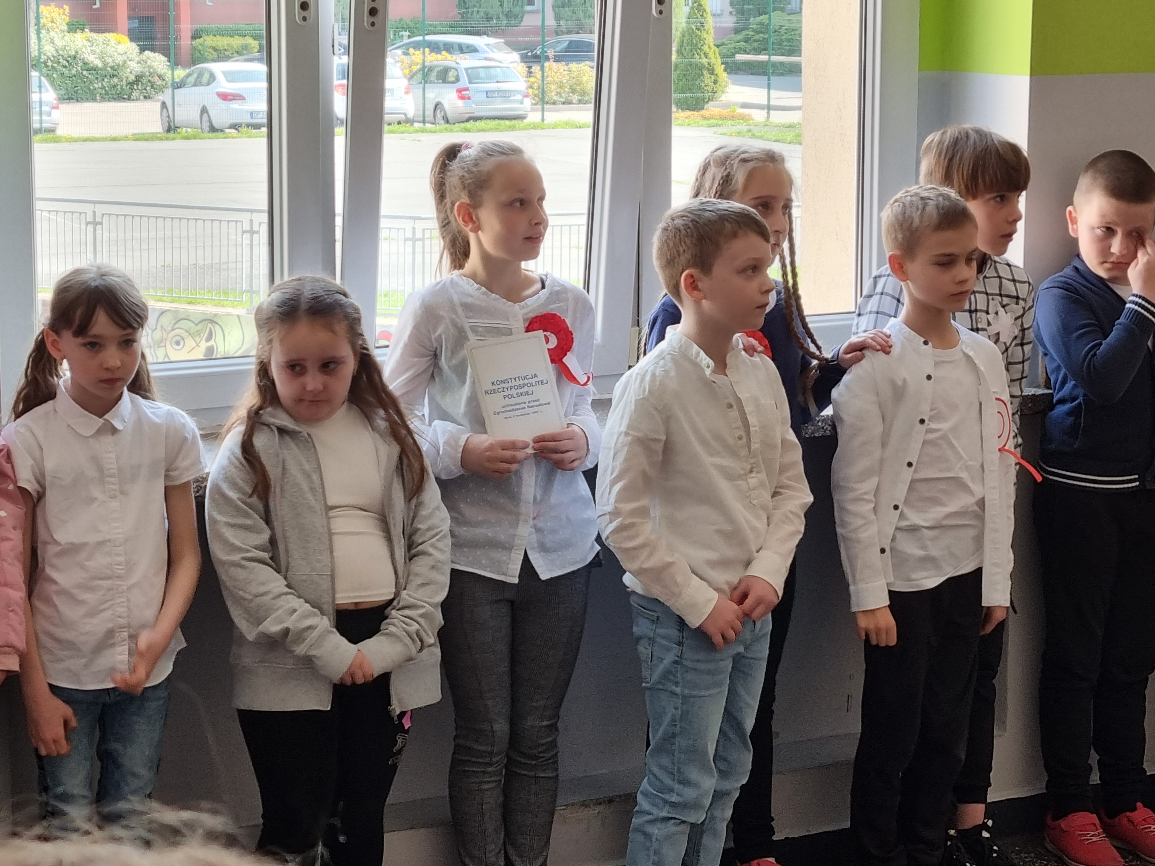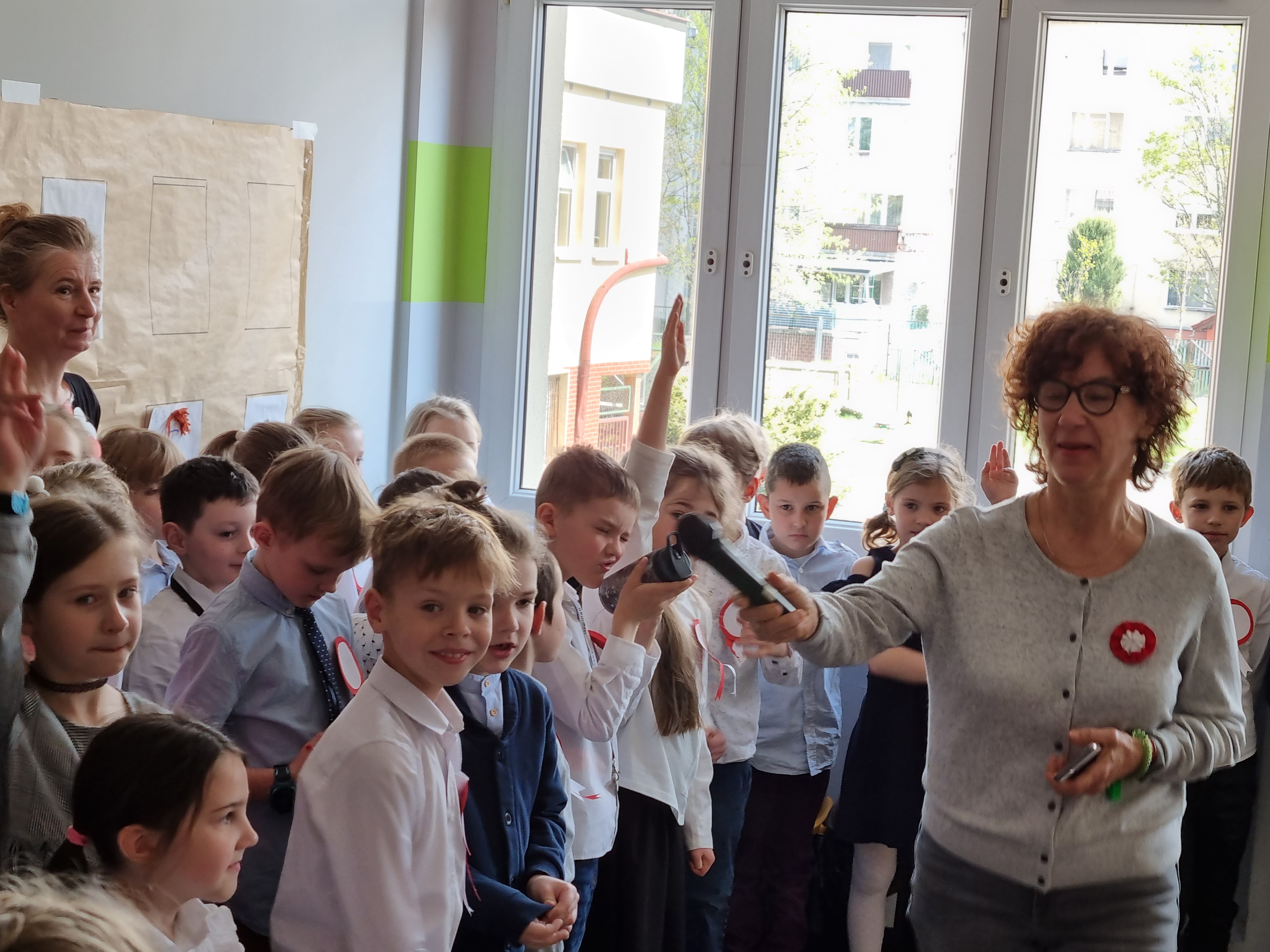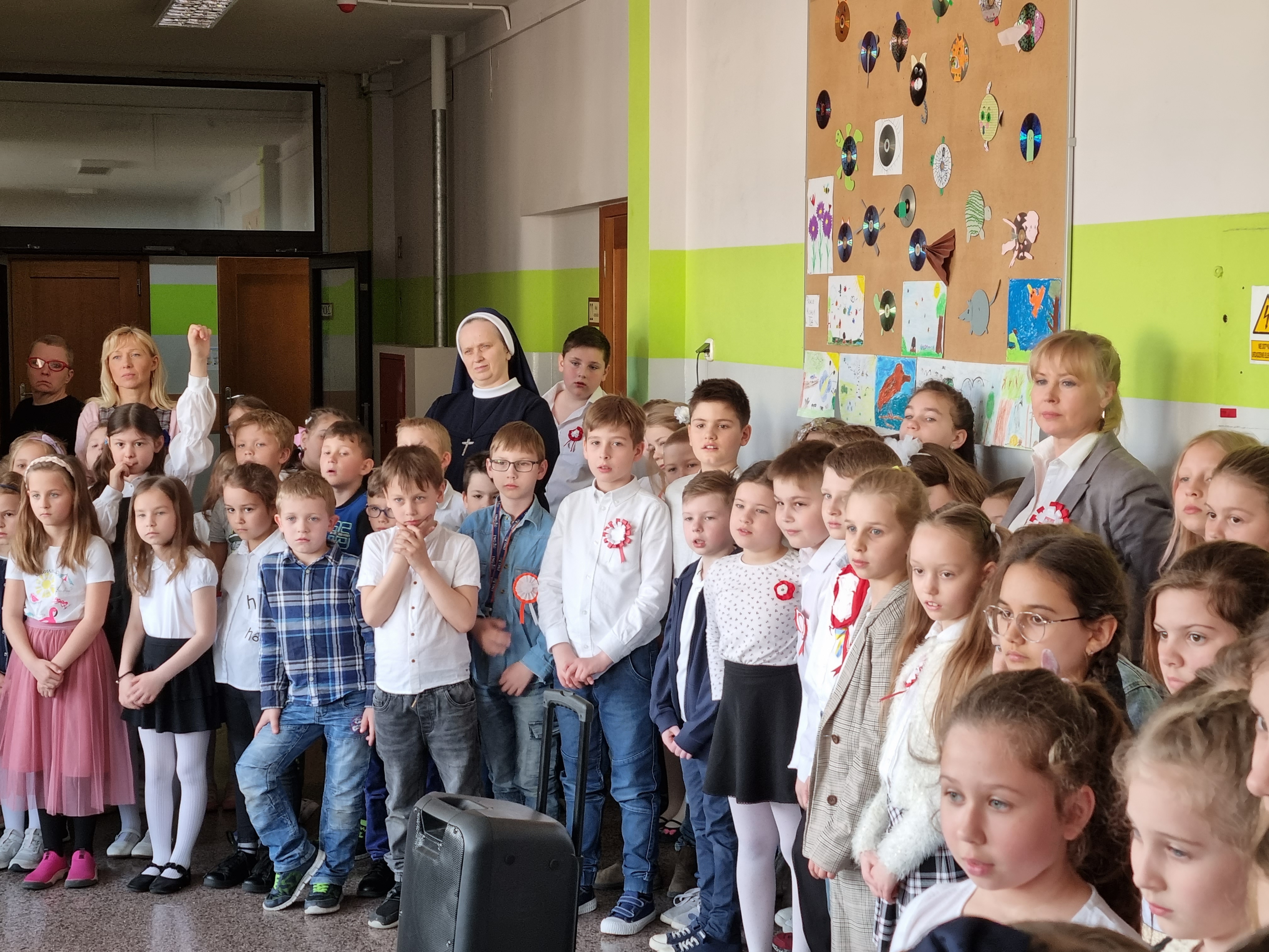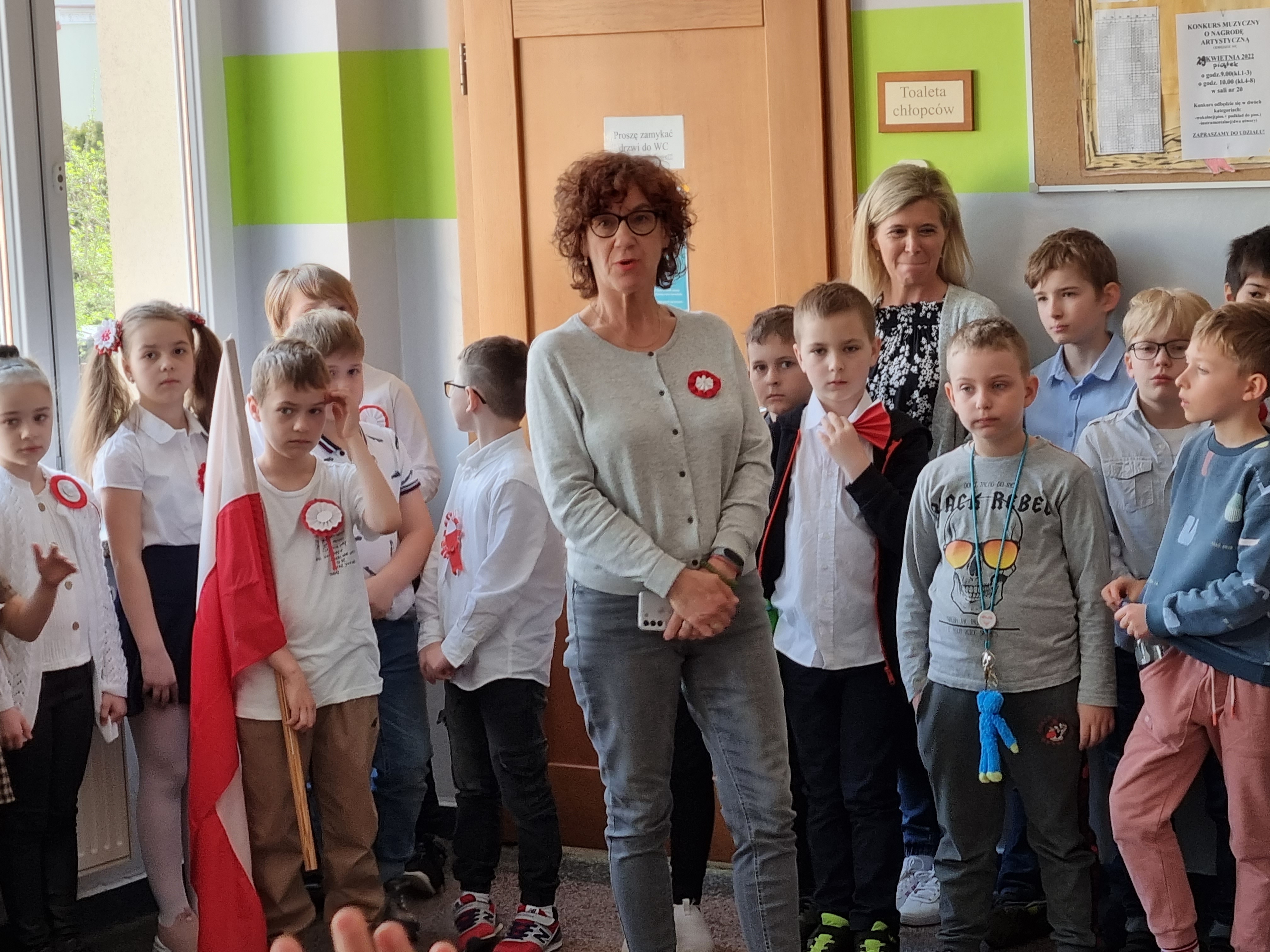 O 11.00 uczniowie młodszych klas I - III, w towarzystwie swoich wychowawczyń, z dumą odśpiewali hymn oraz porozmawiali o najważniejszych symbolach narodowych.