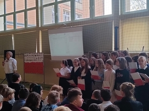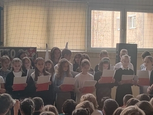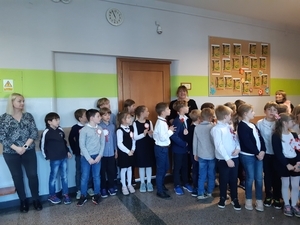 Uroczyście i radośnie obchodziliśmy Święto Niepodległości 11 Listopada. Uczniowie klas I-III uczestniczyli w uroczystym apelu, przygotowanym przez klasę III a z p. Iwoną Najdek. Śpiewali patriotyczne pieśni i wykazali się wiedzą w quizie patriotycznym. Uczniowie klas IV-VIII uczestniczyli w akademii, przygotowanej przez p. Elżbietę Bartoszek i p. Olgę Berdechowską, na której pokazano prezentację "Droga do Niepodległej" i śpiewano patriotyczne pieśni, zachwyt widowni wzbudziła pieśń "Co to jest niepodległość?". Największą popularnością wśród uczniów cieszyła się pieśń "Jesteśmy Polką i Polakie", słowa "Kochamy Polskę z całych sił, chcemy byś również kochał ją i ty i ty!" nadały uroczystościom podniosły, patriotyczny nastrój. Uczniowie podkreślili Święto Niepodległości galowymi strojami, do których przypiete były biało-czerowne kotyliony.