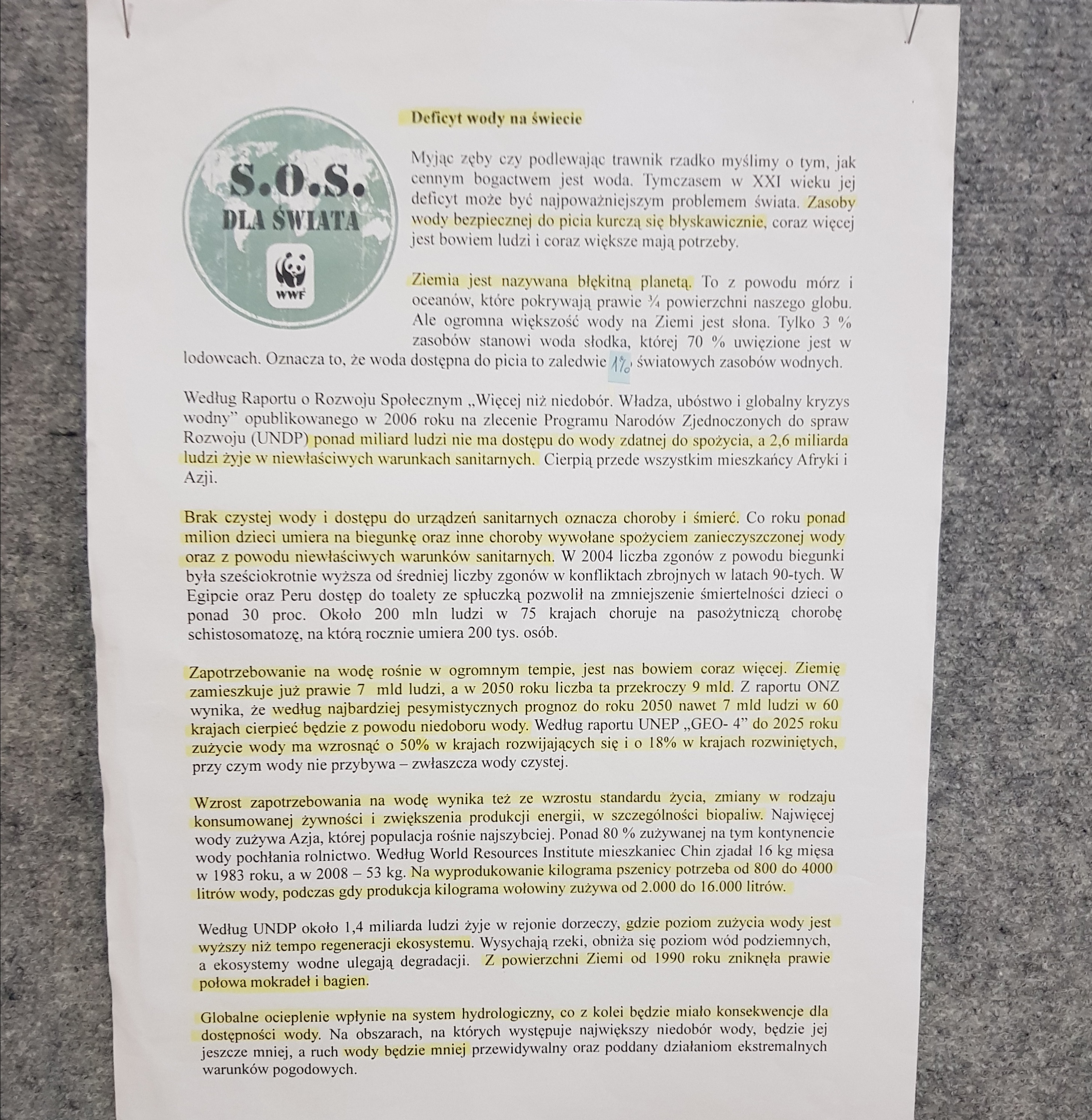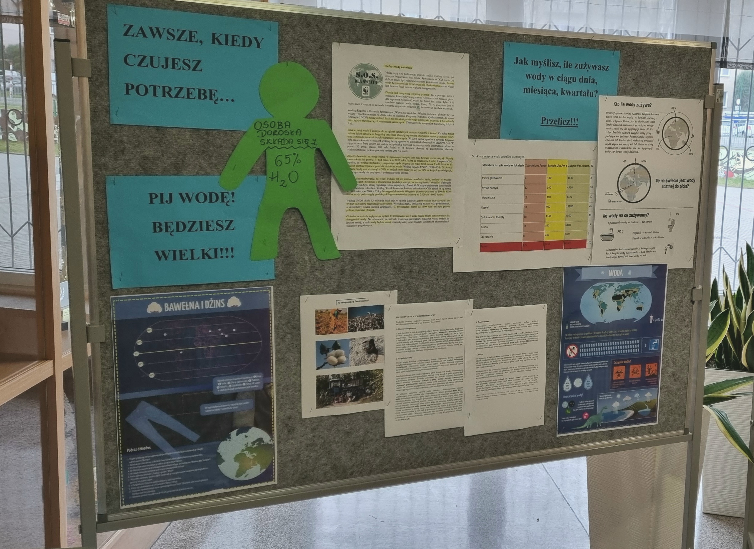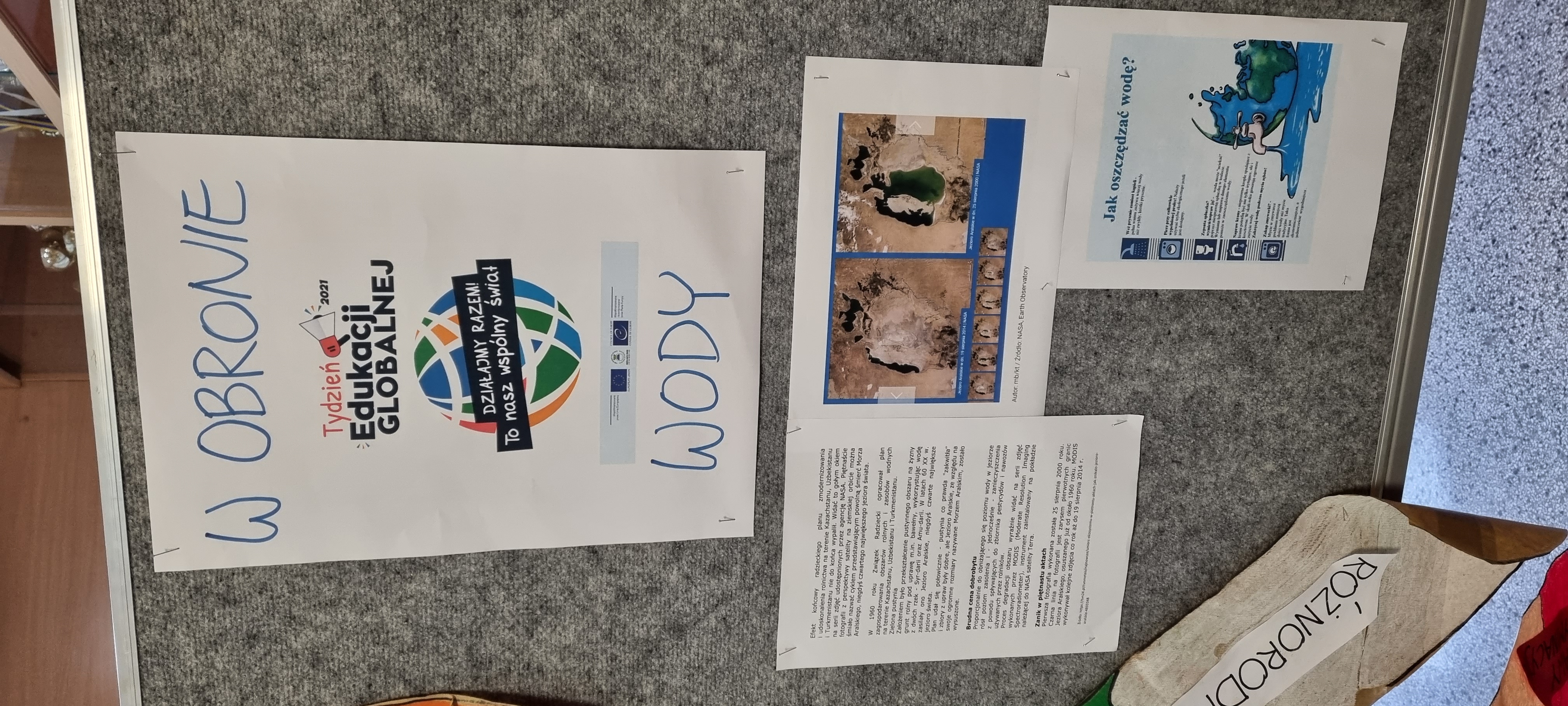 15 listopada rozpoczął się w PSP 21 Tydzień Edukacji Globalnej i potrwa do piątku, tj. 19.11 br. Mając na uwadze wychowanie "globalnego obywatela świata", a także w trosce o nasz wspólny świat, podjęliśmy globalne wyzwanie i  w naszej szkole rozpoczął się cykl różnych działań realizowanych w ramach lekcji języka polskiego, matematyki, biologii, zajęć z wychowawcą, podczas których uczniowie rozmawiają o problemie pustynnienia naszej planety, co jest skutkiem zmian klimatycznych, nieodpowiedzialej konsumpcji oraz braku świadomości czym jest ślad wodny i na czym polega "wylewanie", nie tylko tej realnej, ale także tej wirtualnej wody potrzebnej do wyprodukowania żywności, ubrań czy sprzętu. W planach jest również "Wodna gra terenowa", zaś od poniedziałku można również zatrzymać się przy wystawie i dowiedzieć wielu ciekawych i ważnych informacji.