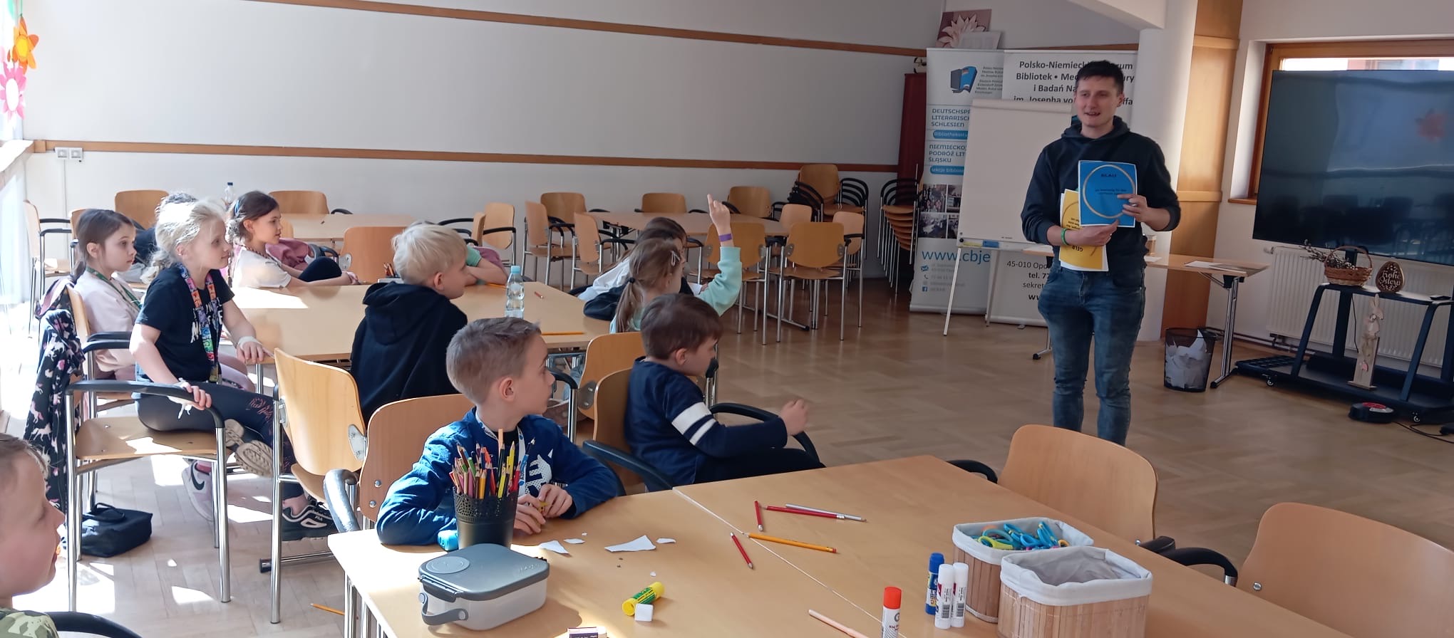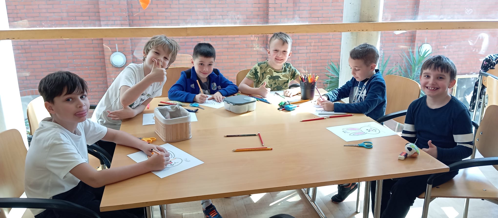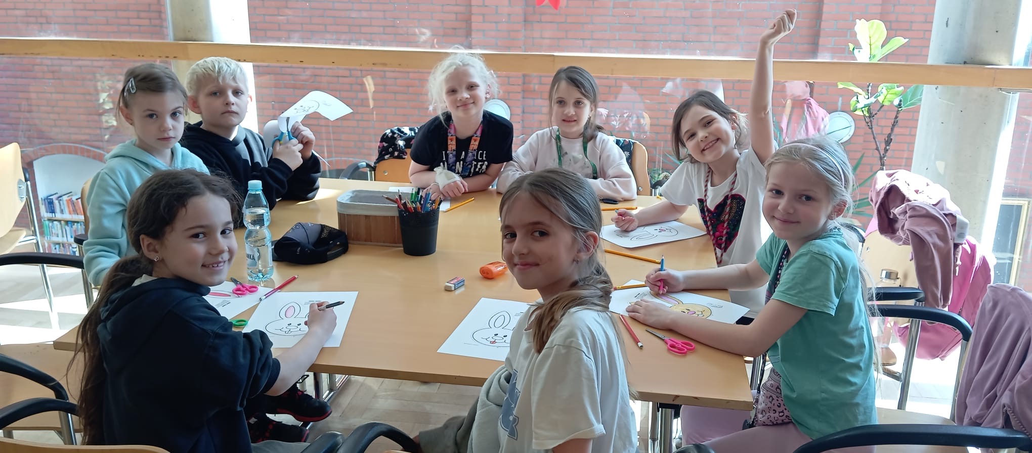 Uczniowie klasy 1 A w ramach lekcji języka niemieckiego jako mniejszości narodowej odwiedzili polsko-niemiecką bibliotekę im. Josepha von Eichendorffa. Tam uczestniczyli w warsztatach wielkanocnych, podczas których dowiedzieli się więcej o tworzeniu kroszonek. Poznali tradycyjne opolskie wzory oraz znaczenie poszczególnych kolorów. Każdy uczestnik miał okazję zaprojektować swoją kroszonkę. Na zakończenie zajęć odbyło się wielkie szukanie wielkanocnego zajączka między bibliotecznymi regałami.