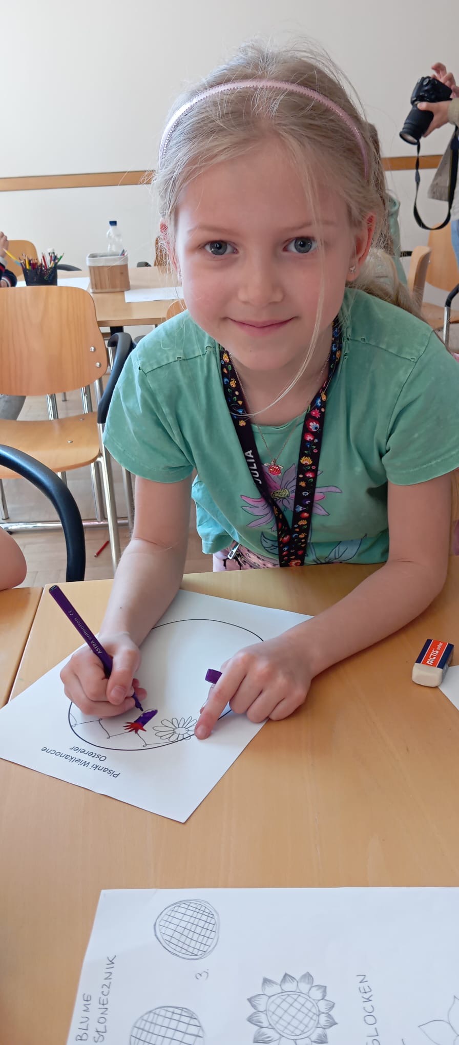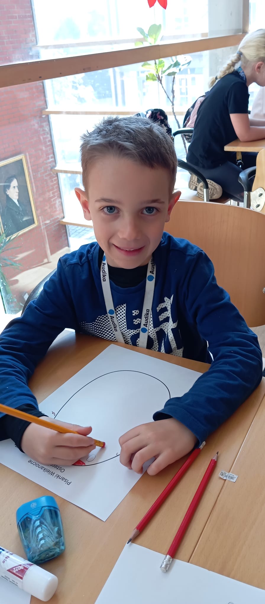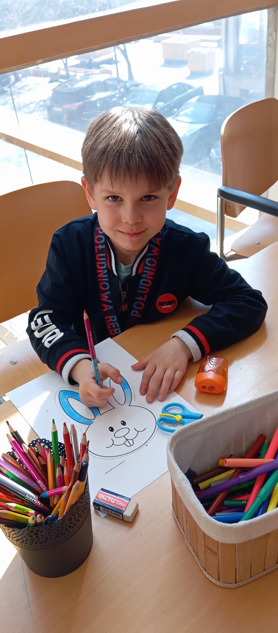 Uczniowie klasy 1 A w ramach lekcji języka niemieckiego jako mniejszości narodowej odwiedzili polsko-niemiecką bibliotekę im. Josepha von Eichendorffa. Tam uczestniczyli w warsztatach wielkanocnych, podczas których dowiedzieli się więcej o tworzeniu kroszonek. Poznali tradycyjne opolskie wzory oraz znaczenie poszczególnych kolorów. Każdy uczestnik miał okazję zaprojektować swoją kroszonkę. Na zakończenie zajęć odbyło się wielkie szukanie wielkanocnego zajączka między bibliotecznymi regałami.